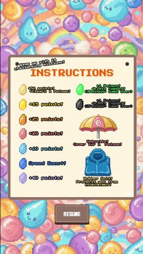 Master power-ups like the Umbrella and Rubber Suit, complete special timed missions, and chase new high scores with each run. With vibrant visuals, dynamic effects, and simple but addictive gameplay, Raindrop Catcher delivers a fresh, energetic challenge for all ages.